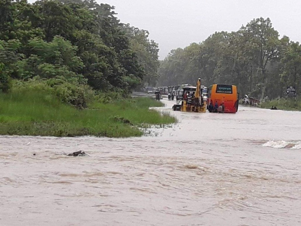 तीन दिनदेखि लगातार पानी परेपछि पूर्व–पश्चिम राजमार्ग अवरुद्ध भएको छ।