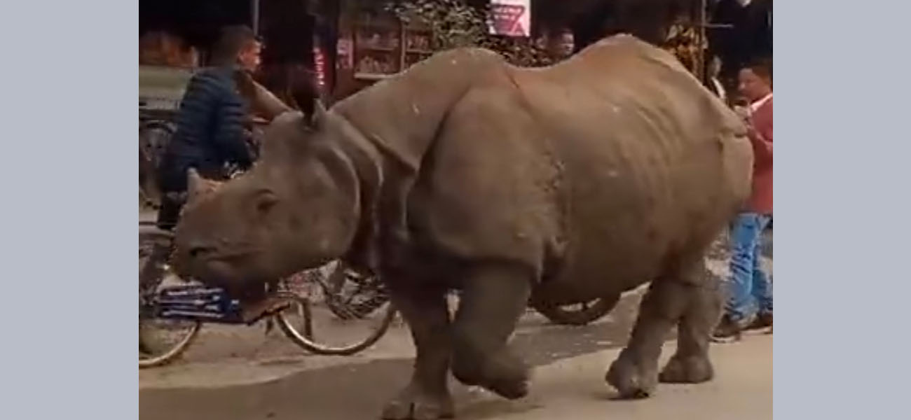 केही दिनअघि नेकपा एमालेको राष्ट्रिय महाधिवेशन हुँदै गर्दा बन्दसत्रस्थल नजिकै गैंडा झुल्कियो। महाधिवेशनस्थलको गेटबाट अघि बढेको गैंडाको फोटो खिच्ने, ऊसँग फोटो खिचाउने प्रतिष्पर्धै चल्यो। केही दिनदेखि यो गैंडा सौराहाबाट केही पर व्यावसायिक रूपमा घाँसखेती गरिएको ठाउँमा लुकेको थियो। किसानले गैंडाले घाँस खाइदिएको गुनासो गरेपछि चितवन निकुञ्जको टोलीले धपाएर सौराहाबजारको बाटो हुँदै निकुञ्जको पूर्वी सेक्टर र केन्द्रको परिसरमा रहेको वन क्षेत्रमा ल्याएको थियो।