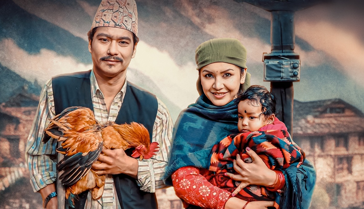 पोस्टरमा फिल्मका मुख्य कलाकार सौगात मल्ल र बेनिशा हमाललाई प्रस्तुत गरिएको छ। सौगात बैशाखीको सहाराले हातमा रातो भाले समातेर उभिएका छन्, भने उनको छेउमा बेनिशा बच्चा बोकेर खुसी मुद्रामा देखिएकी छन्। फिल्ममा यी दुई श्रीमान–श्रीमतीको भूमिकामा देखिएको अनुमान पोस्टरबाट गर्न सकिन्छ।