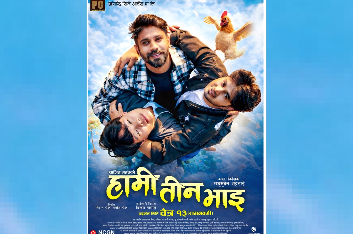 मधुसुदन भट्टराई निर्देशित फिल्म 'हामी तीन भाइ' आगामी चैतमा प्रदर्शनमा आउने भएको छ। निर्माण टिमले बुधबार फिल्मको पोस्टर रिलिज गर्दै १३ गतेलाई प्रदर्शन मिति घोषणा गरेको हो।