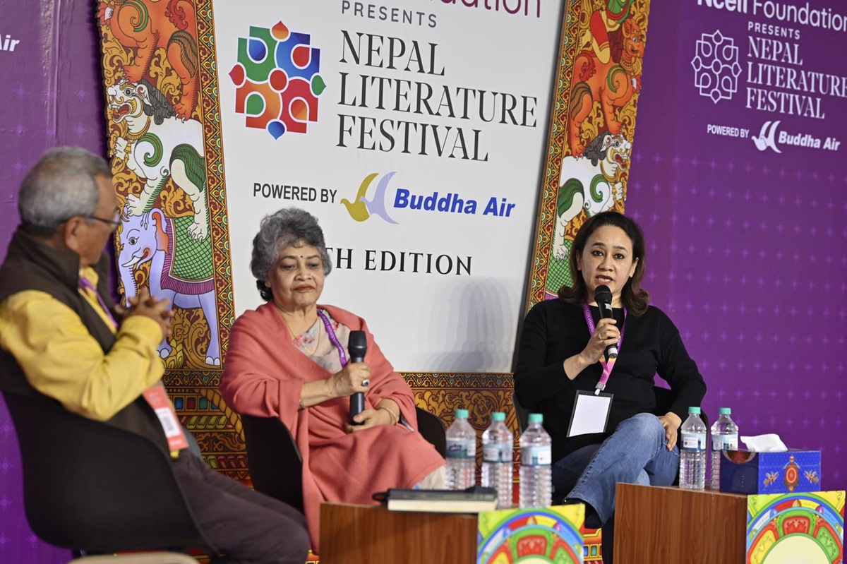 कार्यक्रम उद्घाटन भइसकेपछिको दोस्रो सेसनका क्रममा उनीहरूसँग सहजकर्ताका रूपमा बसन्त थापाले संवाद गरे।