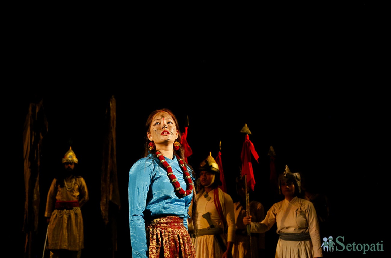 काठमाडौंको थापागाउँस्थित मण्डला नाटक घरमा नाटक 'सुनकेशरी' मञ्चन भइरहेको छ।