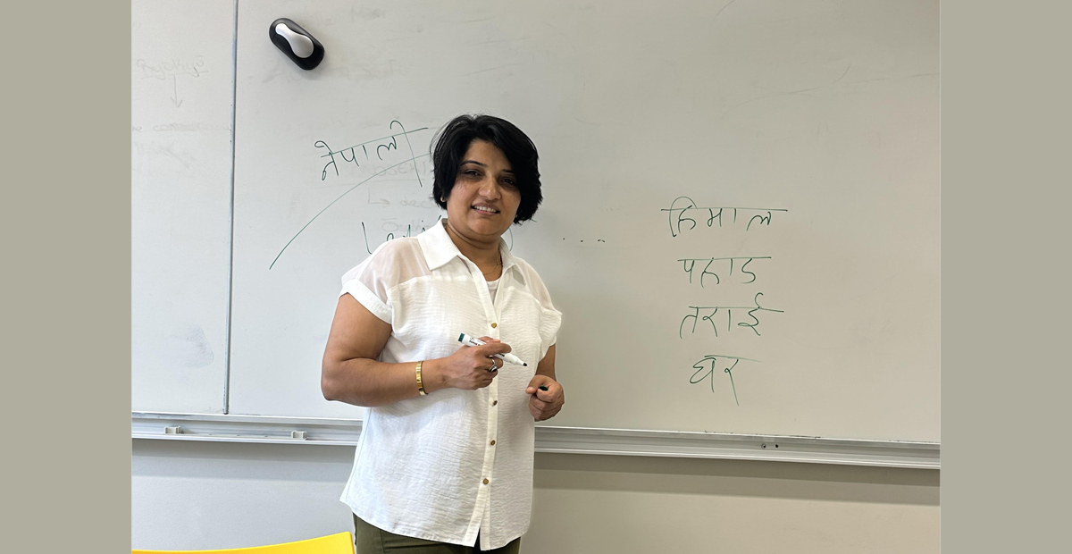 त्यही विल्डिङको १५ नम्बर लेखिएको कोठाभित्र पुग्नुभयो भने तपाईंले ह्वाइट बोर्डमा नेपाली अक्षर लेखेको देख्नुहुनेछ। वाउ! नेपालीका लागि कति उत्साहपूर्ण खबर।
