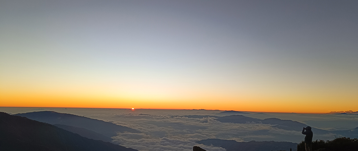 भोलिपल्ट सूर्योदय अघि उठेर सूर्योदय हेर्ने योजना बनाई सबैजना खाना खाएर सुत्न गयौं। म चाहिँ राति त्यहाँको दृश्य हेर्न चाहन्थेँ र त्यहाँको हावामा रमाइला रमाइला सम्झनाहरू आफूमा कैद गर्न चाहिरहेको थिएँ। फेरि कहिले आउने थाहा थिएन, त्यसैले पटक–पटक मध्य रातमा उठेर बाहिर निस्किरहन्थें। आकाशमा ताराहरू र चन्द्रमाको उज्यालोले वातावरणलाई एकदम सुन्दर बनाइरहेको थियो। ती मनमोहक दृश्यहरूलाई मोबाइलमा कैद गर्न व्यस्त भएँ। मध्यरातमा पदयात्रा गरिरहेका अन्य पर्यटकहरू पनि टर्च बाली गीत गाउँदै आउँदै गरेको आवाज त्यो शान्त वातावरणमा स्पष्ट सुन्न सक्थेँ। म प्रायः नसुतेर नै रात बिताएँ।