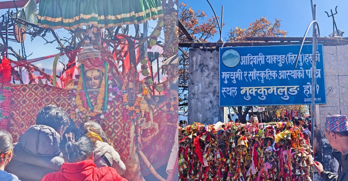 काचो निन्द्रा, ठाडो उकालो चढेर थाकेका शरीर, अथाह आस्था र विश्वास एक एक पाथी बोकेर करिब बिहानको ६ बजे हामी मन्दिर प्राङ्गणमा पुग्यौं। सूर्योदय हुँदै थियो र खुलेर कञ्चनजङ्घा हाँसिरहेको दृश्यावलोकन शब्दमा व्यक्त गर्न सकिन्न!
