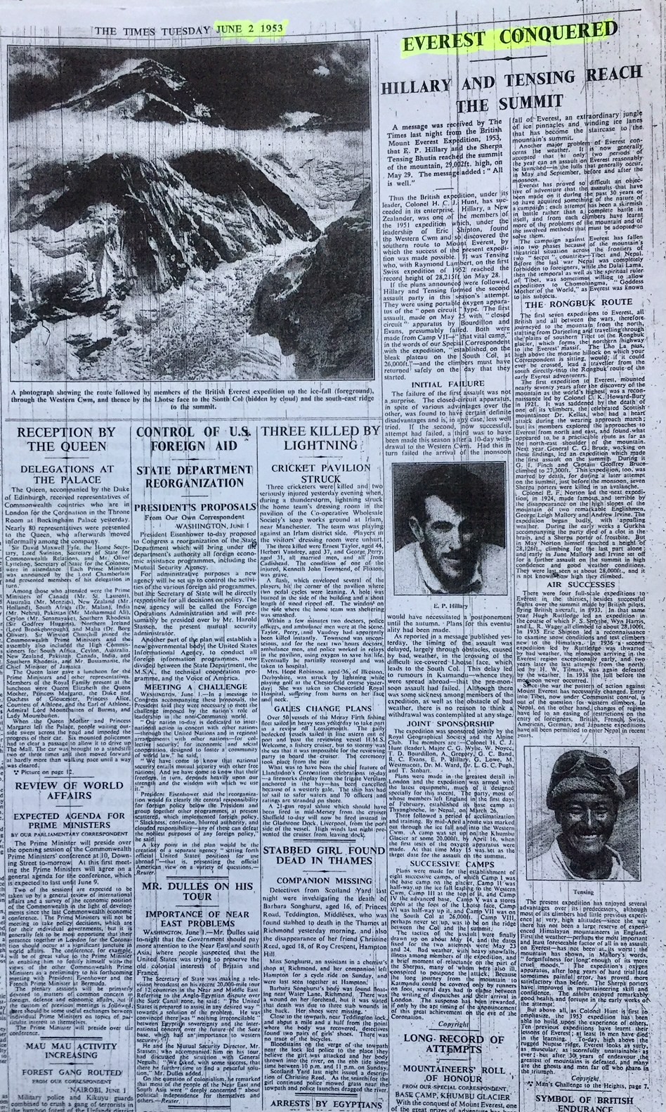 २ जुन, १९६३ ‘हिलारी र तेन्जिङ सगरमाथामा पाइला टेके’ शीर्षकमा टाइम्समा छापिएको समाचार