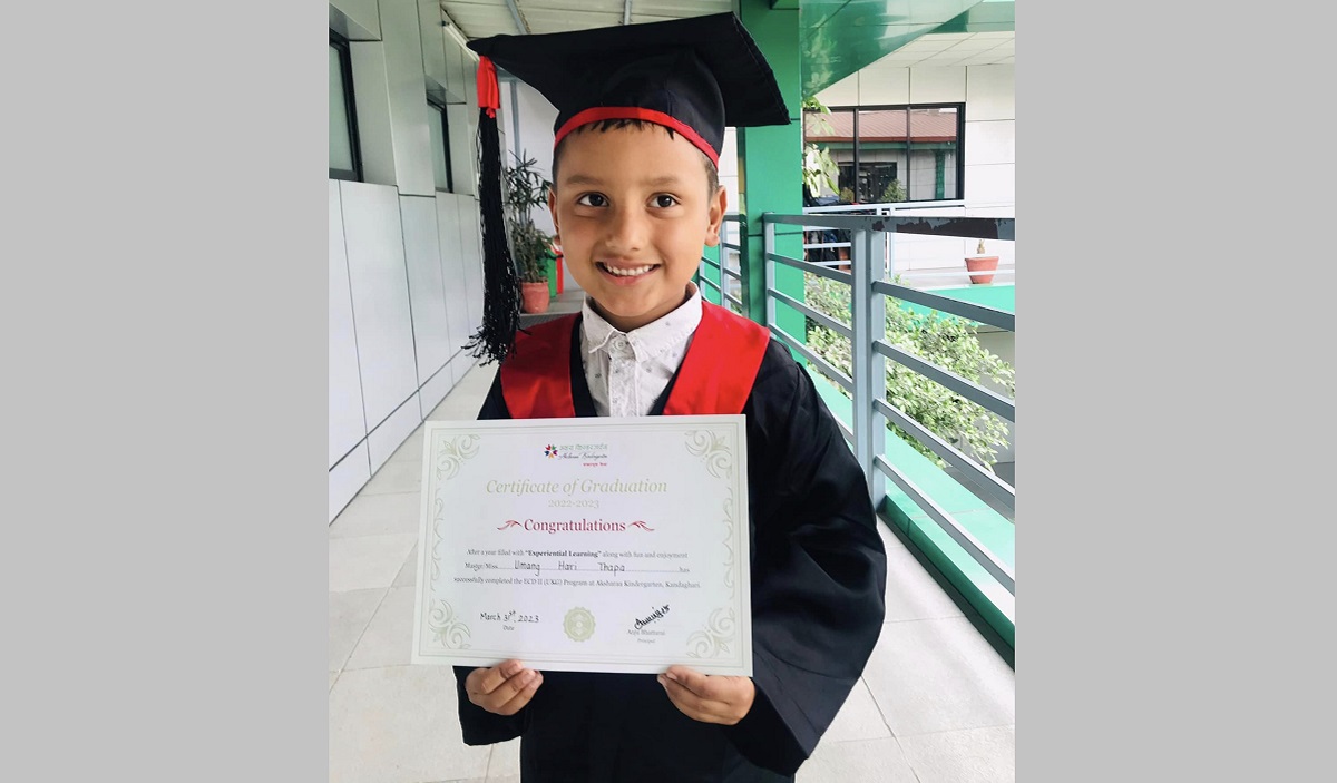 (उमंगहरि थापा अक्षरा स्कुलमा कक्षा १ मा अध्ययनरत छन्।)