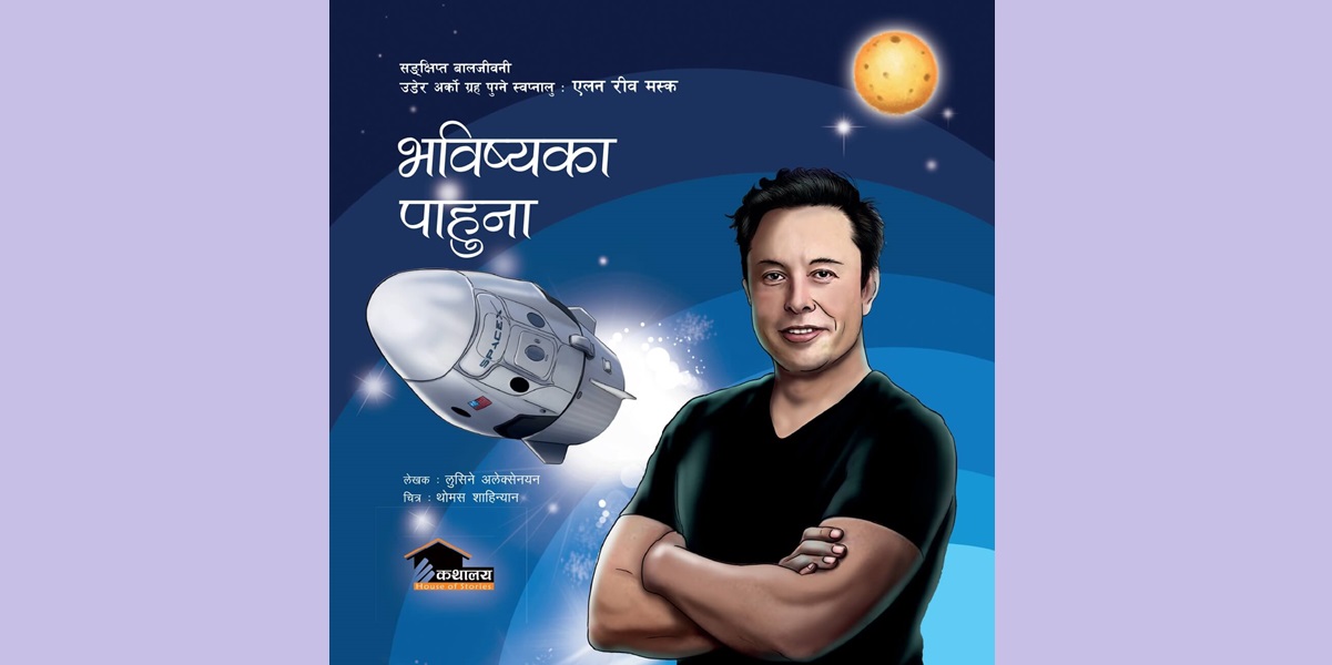 'भविष्यका पाहुना' नामक किताबको लेखक लुसिने अलेक्सेनयन हुन्। किताबको चित्रांकनकर्ता थोमस शाहिन्यान हुन्। यस किताबमा एलन रीव मस्कको जीवनी छ।
