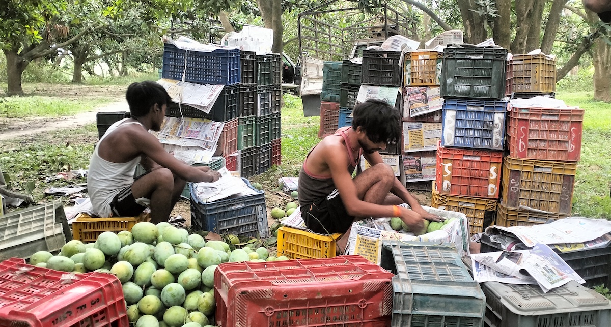 बगैंचामा आँप टिप्दै गरेका स्थानीय कामदार रौदी पासवान भन्छन्, ‘कागजले बेरेर आँप राख्दा आँपको दूध (चोप) ले कलर (रङ) बिग्रिँदैन, घस्रा पनि लाग्दैन। कागजले बेर्दै मिलाउँदै आँप प्याक गर्न सबैले जान्दैनन्, जान्नेले मात्र गर्छ।’
