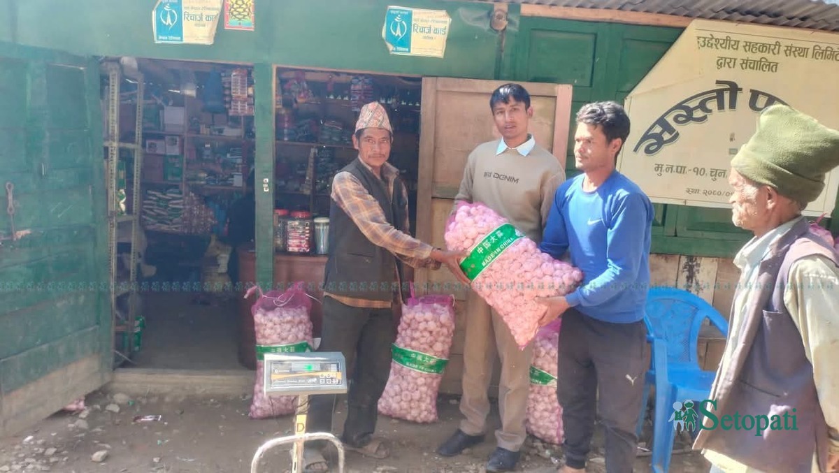किसानहरूलाई लसुन बेच्न समस्या छैन, मूल्य पनि राम्रो छ। सहरका व्यापारीहरू लसुन दिनुपर्यो भन्दै गाउँमै आउँछन्।