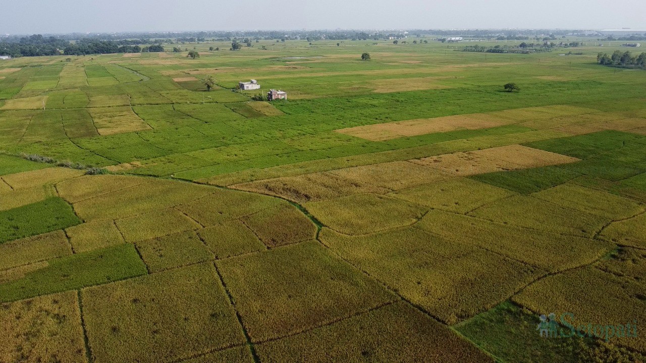 यस वर्ष पानी ढिलो परेकोले साउनको अन्तिम सम्म नै रोपाइँ भएकोले त्यो धान अझै हरियै रहेको र छिटो पाक्ने अगैया जातको धान पहेँलो भईसके पनि काट्न हतारिइहाल्नु पर्ने नभएको उनले बताए।