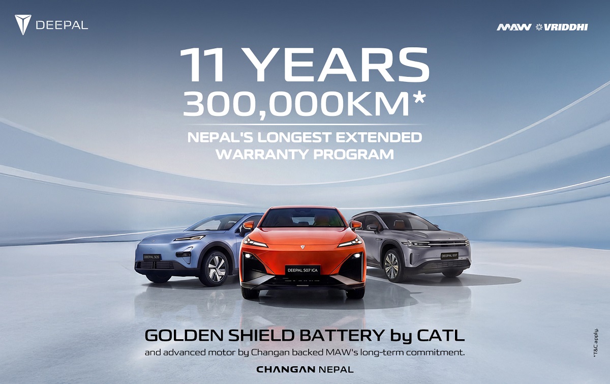 'यो केबल एक्टेन्डेड वारेन्टी मात्र होइन, विश्वासको अभिव्यक्ति पनि हो,' एमएडब्लु वृद्धिका प्रबन्ध निर्देशक विवेक सिकारियाले भने, 'सिएटिएलको गोल्डेन शिल्ड ब्याट्री र चांगानको अत्याधुनिक इलेक्ट्रिक मोटरमाथिको हाम्रो विश्वासका आधारमा हामीले नेपाली ग्राहकको पिस अफ माइन्डलाई ध्यानमा राखेर यो एक्टेन्डेड वारेन्टी लागु गरेका हौँ।'