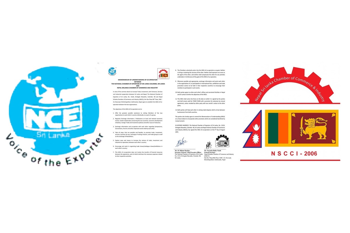 नेपाल–श्रीलंका चेम्बर अफ कमर्स एण्ड इन्डष्ट्री र चेम्बर अफ एक्सपोर्ट श्रीलंकाबीच व्यापार, लगानी, संयुक्त उद्यमलगायतका विषयमा हस्ताक्षर भएको छ।