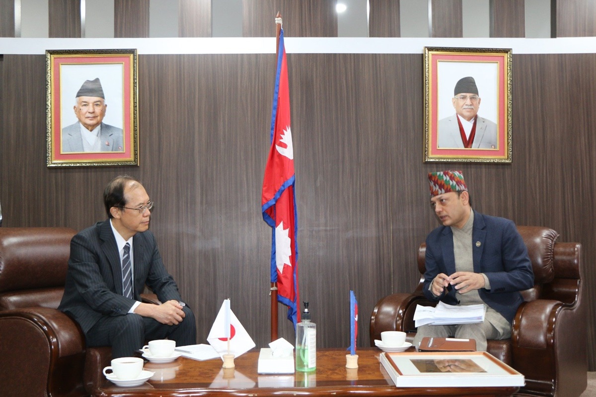 श्रम, रोजगार तथा सामाजिक सुरक्षा मन्त्री डोलप्रसाद अर्याल र नेपालका लागि जापानिज राजदूत किकुता युताकाबीच बुधबार मन्त्रालयमा भेटवार्ता भएको छ।