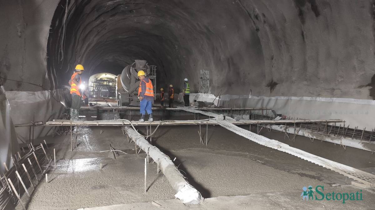 ‘वर्षाको पानी, पहिरो लगायतले पनि सुरूङभित्रको काममा कुनै अवरोध भएको छैन निरन्तर काम भइरहेको छ, इन्भर्ट र लाइनिङको काम पूरा भएपछि सुरूङभित्र भेन्टिलेसन र लाइट जडान गर्ने, अक्सिजन, सुरक्षाका उपाय, आगो निभाउने यन्त्र जडान लगायतका काम सुरु हुन्छ,’ ज्ञवालीले भनिन्।