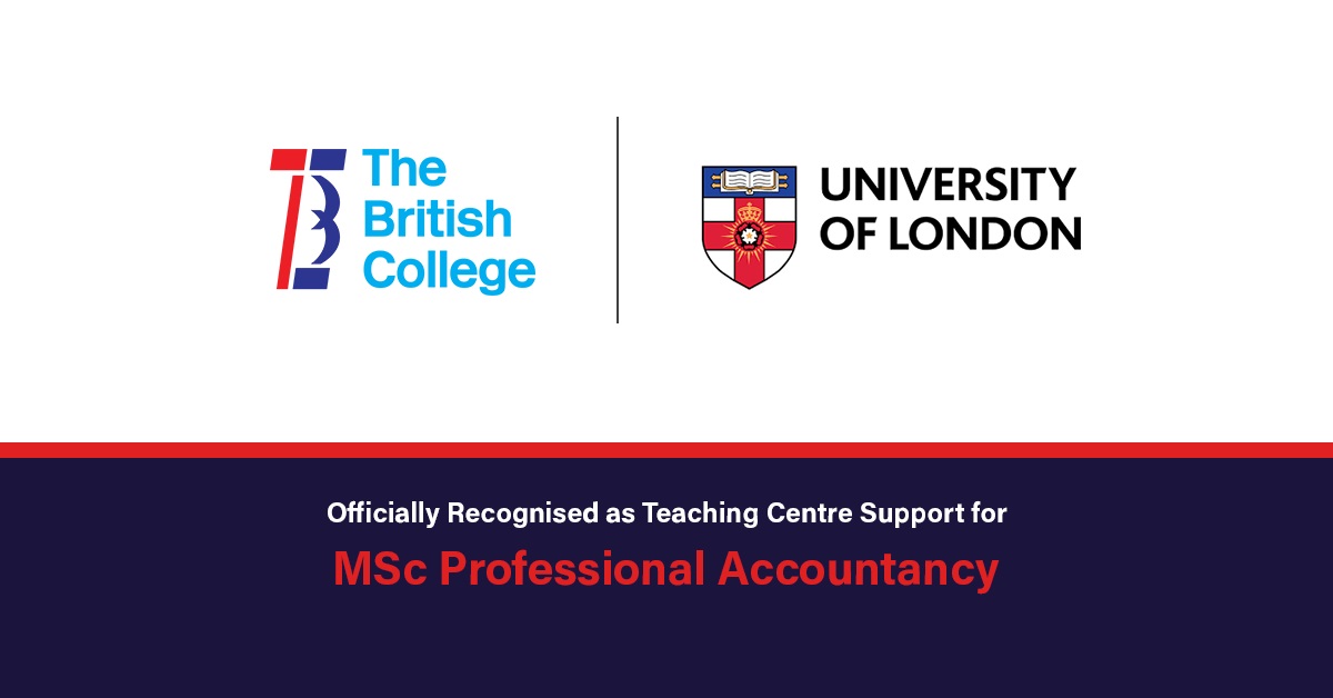 द ब्रिटिस कलेजले युनिभर्सिटी अफ लण्डन (युओएल)बाट एमएससी प्रोफेशनल अकाउन्टिङ कोर्षको लागि आधिकारिक शिक्षण केन्द्रको मान्यता प्राप्त गरेको छ।