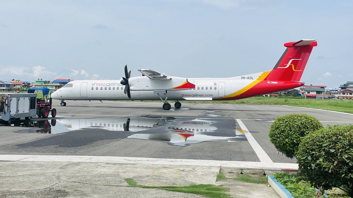 बिहीबार बिहान श्री एयरको ड्यास–८–क्यू–४०० जहाज भरतपुर विमानस्थलमा अवतरण गरेको थियो।