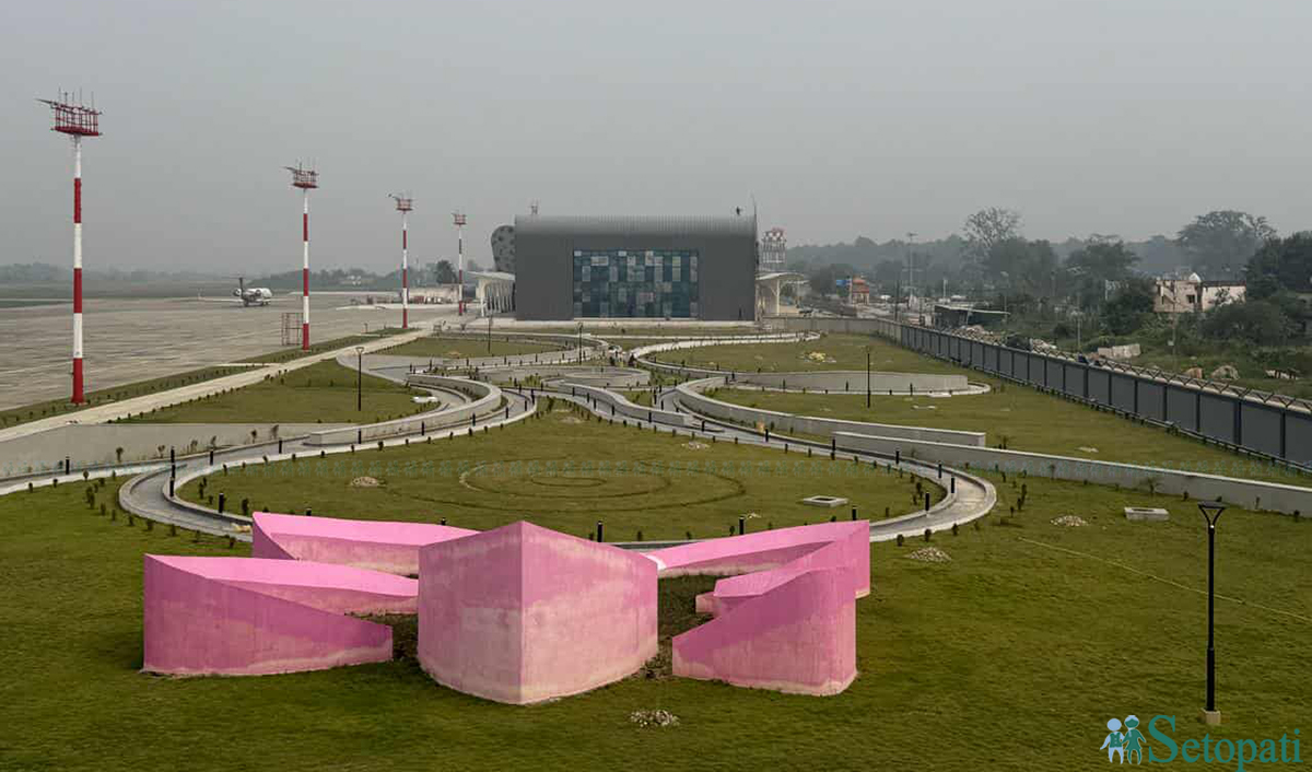 विमानस्थलको दक्षिणतर्फ अचानक कालो धुवाँ निस्कियो। यो भनेको जहाज अवतरण गर्ने (कोटेश्वरतर्फको) धावनमार्ग हो।
