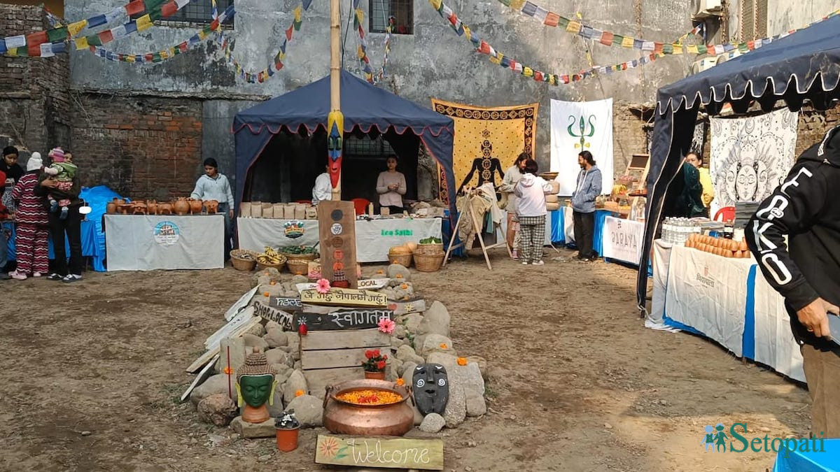 बीच भागमा ढुंगा र काठ थुपारिएको छ। जल र फूल राखेर सजाइएको तामाको ताउलो, गौतमबुद्धको मूर्ति र मगमग बास्ना छर्दै बलिरहेको धुपले त्यहाँ पुग्नेहरूलाई स्वागत गरेको हुन्छ।