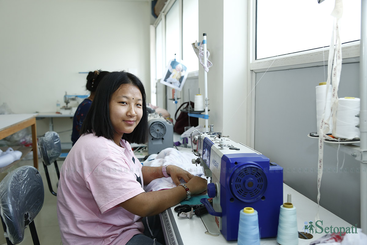 'जरी र मोतीले बच्चालाई घोच्ने र चिलाउने समस्या हुन्छ। त्यसैले हामी इम्ब्रोडरी पनि कटनकै गर्छौं। यो नरम हुन्छ। इम्ब्रोडरीले लुगा राम्रो पनि देखिन्छ,' उनले भनिन्।