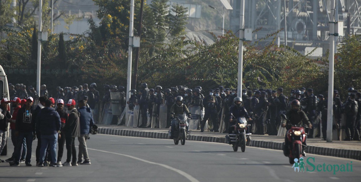 तीनकुने र बल्खु क्षेत्रसहित काठमाडौं उपत्यकाभित्र बाक्लो संख्यामा नेपाल प्रहरी र सशस्त्र प्रहरी परिचालन भएका छन्।