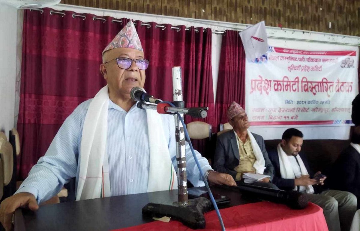 कपिलवस्तुमा सोमबार भएको लुम्बिनी प्रदेशस्तरीय विस्तारित बैठकलाई सम्बोधन गर्दै अध्यक्ष नेपालले देश विकासका बारेमा छलफल गर्न प्रधानमन्त्री केपी शर्मा ओलीलाई आग्रह गरेका छन्।