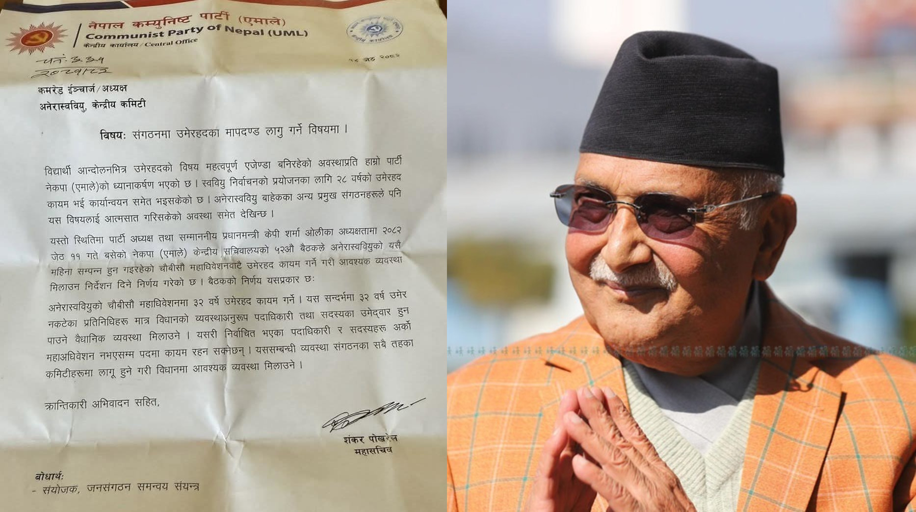 यी निर्णय गर्ने एमालेको त्यही नेतृत्व हो, जसले विधान महाधिवेशनले पारित गरेको विधानमा भएको सबै तहको पार्टीको कार्यकारी कमिटीमा पदाधिकारी वा सदस्य हुन ७० वर्ष उमेर पूरा नगरेको हुनुपर्ने व्यवस्था निलम्बन गरेको थियो।