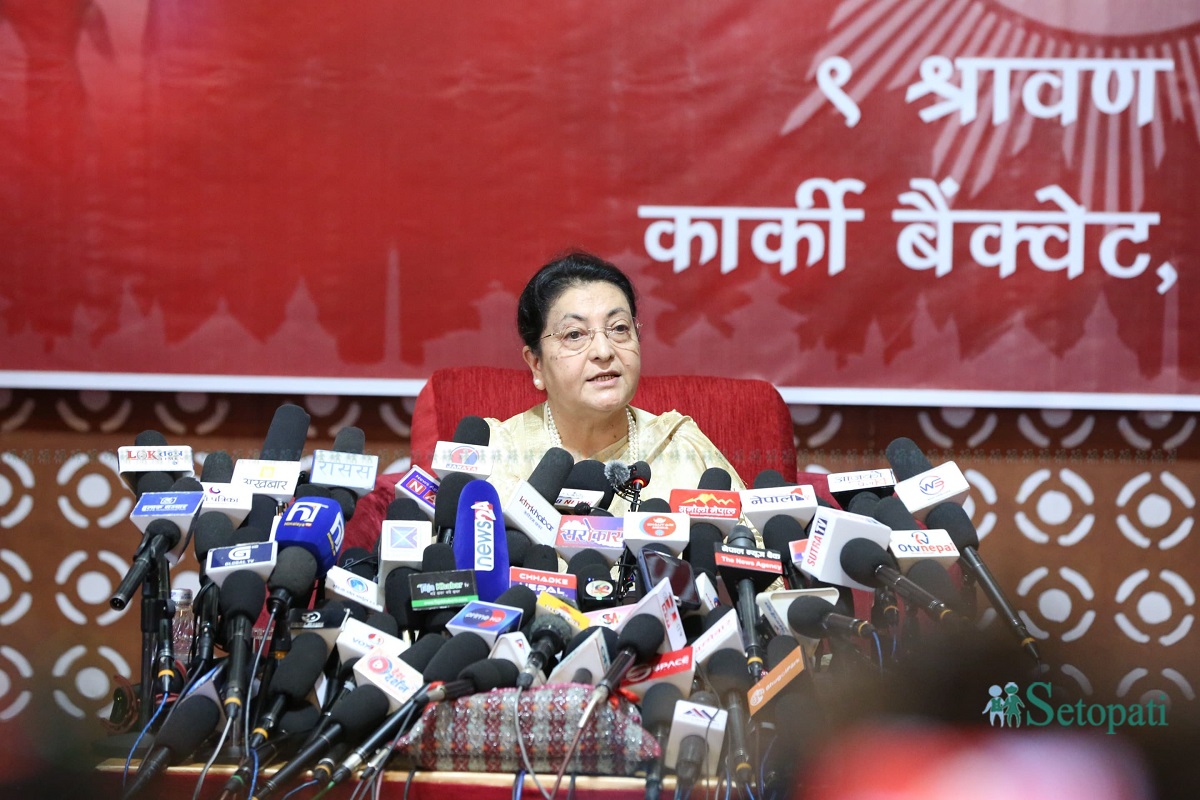 म एक राजनीतिक व्यक्ति भएकाले नै राष्ट्रपति निर्वाचित भएको र राष्ट्रपतिको जिम्मेवारी पूरा गरेर राजनीतिक दलमा आबद्ध बनी देश र जनताको सेवा गर्ने संकल्प गर्नु कुनै अनौठो र आश्चर्य मान्नुपर्ने विषय होइन। यो संवैधानिक अधिकार मात्र होइन, बरू म राजनीति गरेर, पार्टीको नेता भएर नै राष्ट्रपतिमा निर्वाचित भएको हुँ र आफ्नो बाँकी जीवन पनि राजनीतिमा लगाएर नै देश र जनताको सेवामा समर्पित हुने निर्णयमा पुगेको हुँ।