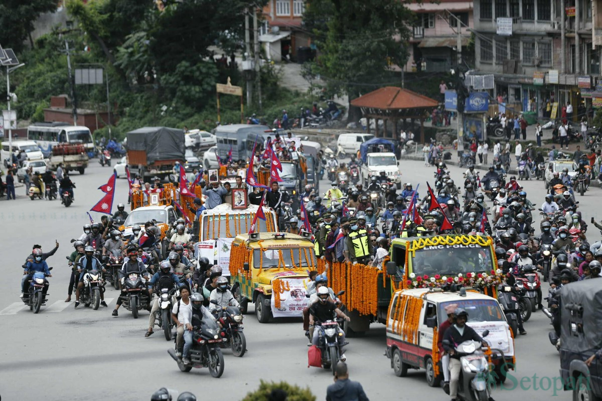 जेन–जी प्रदर्शनका क्रममा गत भदौ २३ गते प्रहरीको गोली लागि मारिएकाहरूको शवयात्रा गरिएको हो।