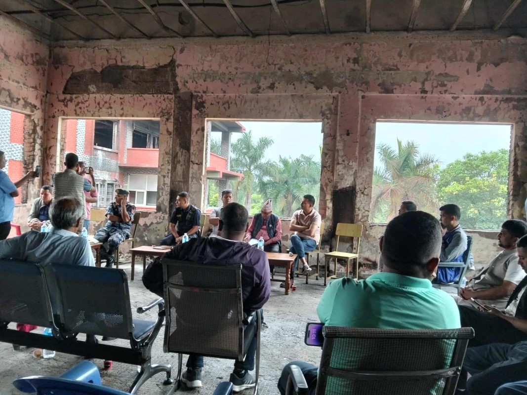 भदौ २४ गते भएको आगजनीपछि खण्डहर बनेको तुलसीपुर उपमहानगरपालिकाको प्रशासनिक भवनमा सर्वदलीय बैठक बसेको छ।
