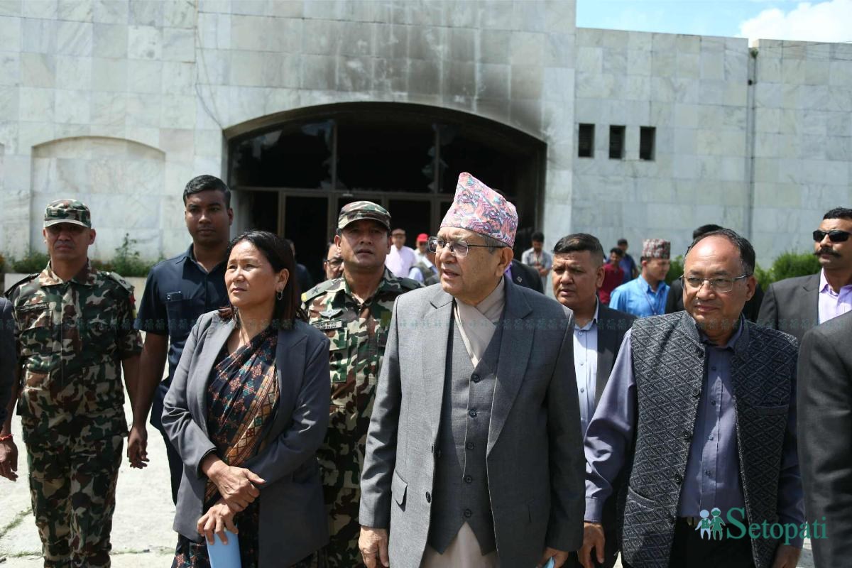 सभामुख देवराज घिमिरेले क्षतिग्रस्त संसद भवन अवलोकन गरेका छन्।