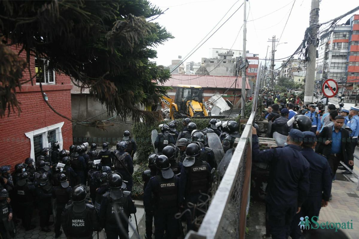 डोजर लिएर प्रहरी प्रभाग पुगेपछि त्यहाँ ठूलो संख्यामा प्रहरी परिचालन गरिएको थियो।