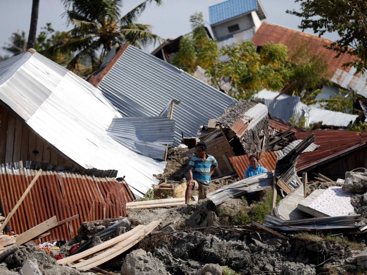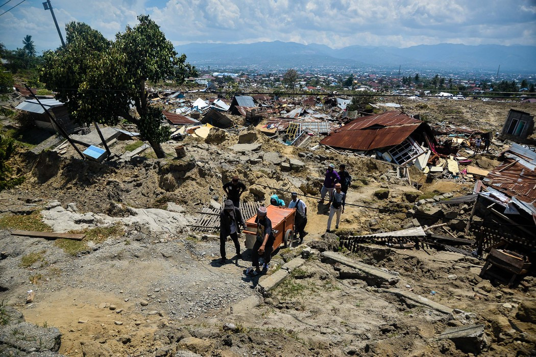 यो इन्डोनेसियाको सुलावेसी क्षेत्रमा गत शुक्रबार गएको भुइँचालोको दृश्य हो।