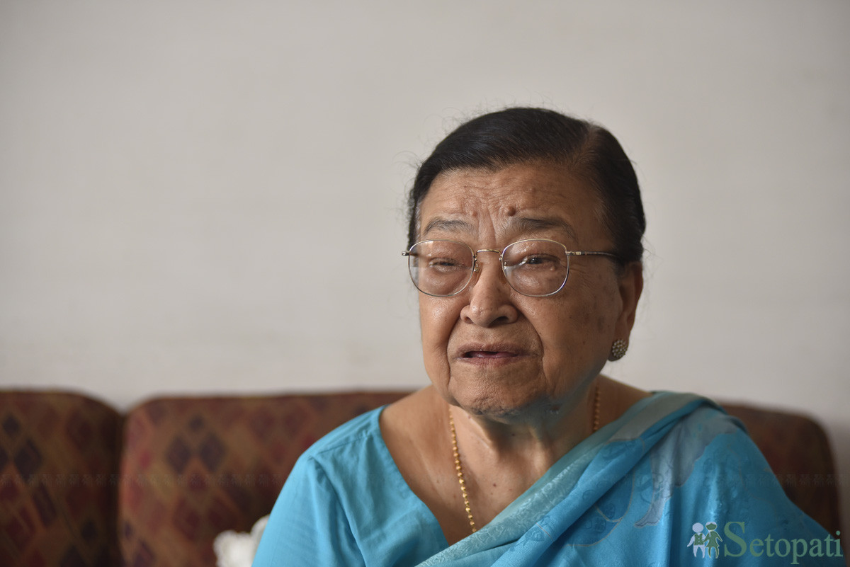 छोरी पढाउन हुन्न भन्ने जमानामा जन्मेकी रत्नदेवी आमाबुबालाई नभनी मखनटोलको कन्या पाठशाला गएकी थिइन्। तस्बिरः नारायण महर्जन/सेतोपाटी