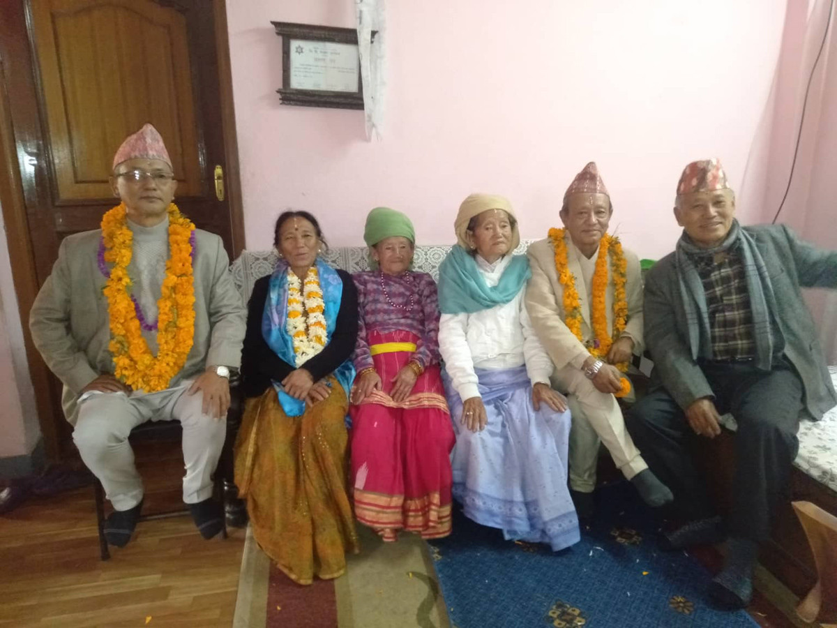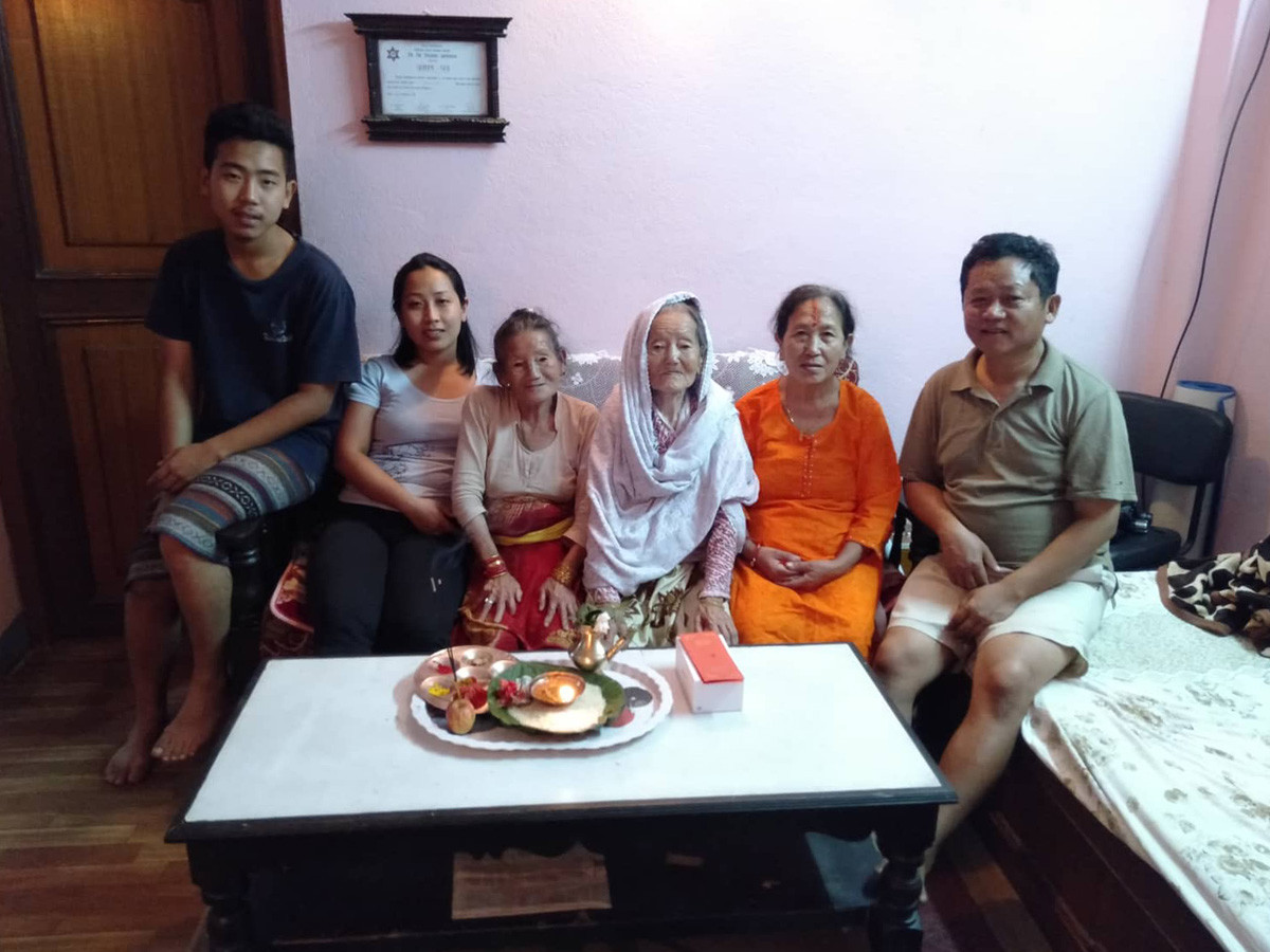 परिवारका सदस्यका साथमा तारादेवी। तस्बिरः तारादेवीको पारिवारिक संकलन