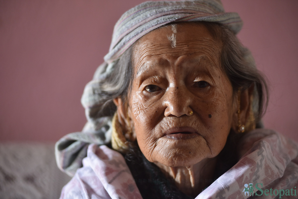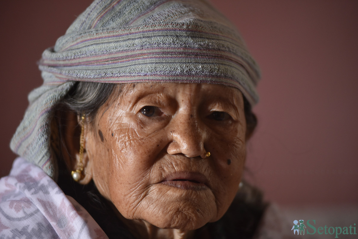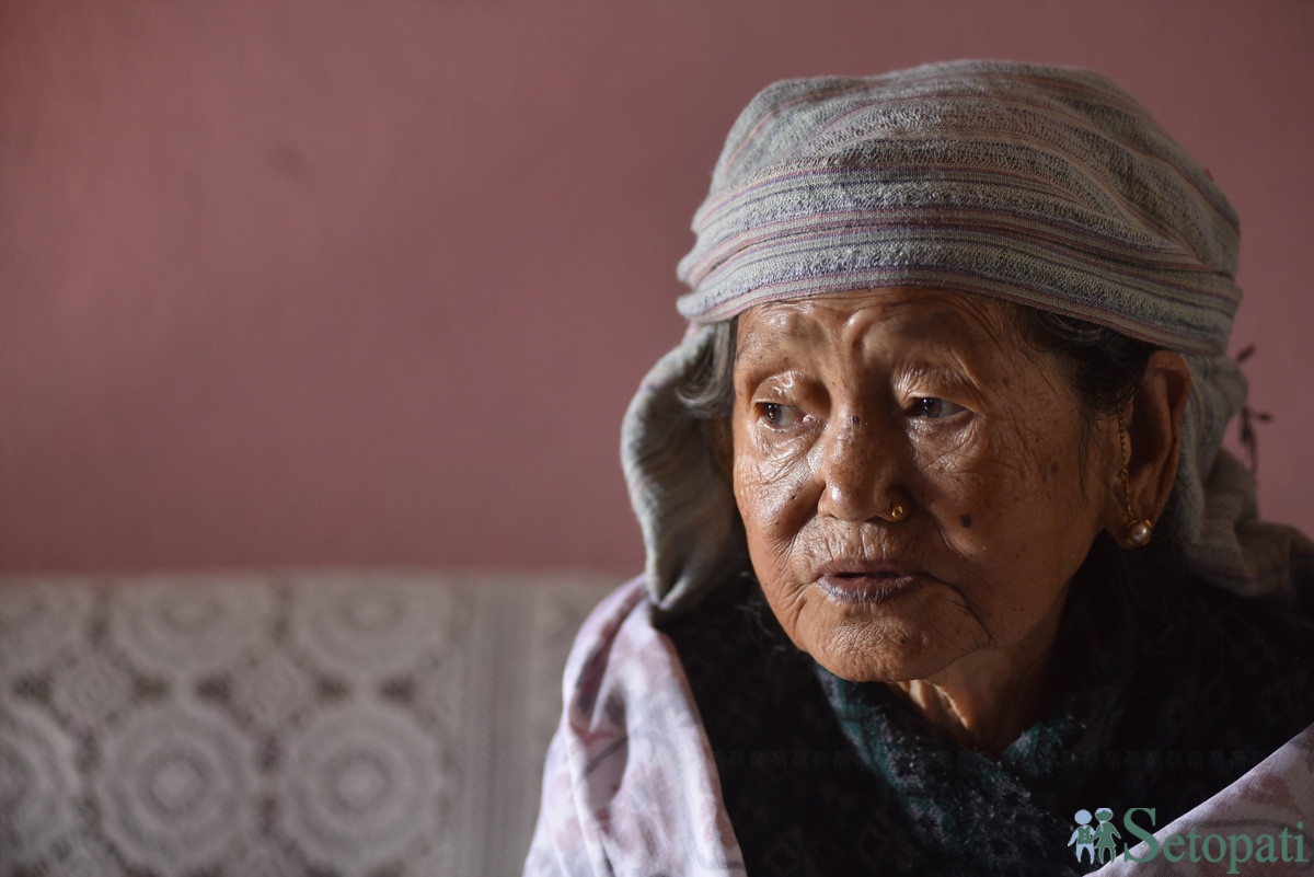 तारादेवी भन्छिन्, 'छोराछोरी, नातिनातिना, बुहारीहरूको माया पाएर बस्याछु। तस्बिरः नारायण महर्जन/सेतोपाटी