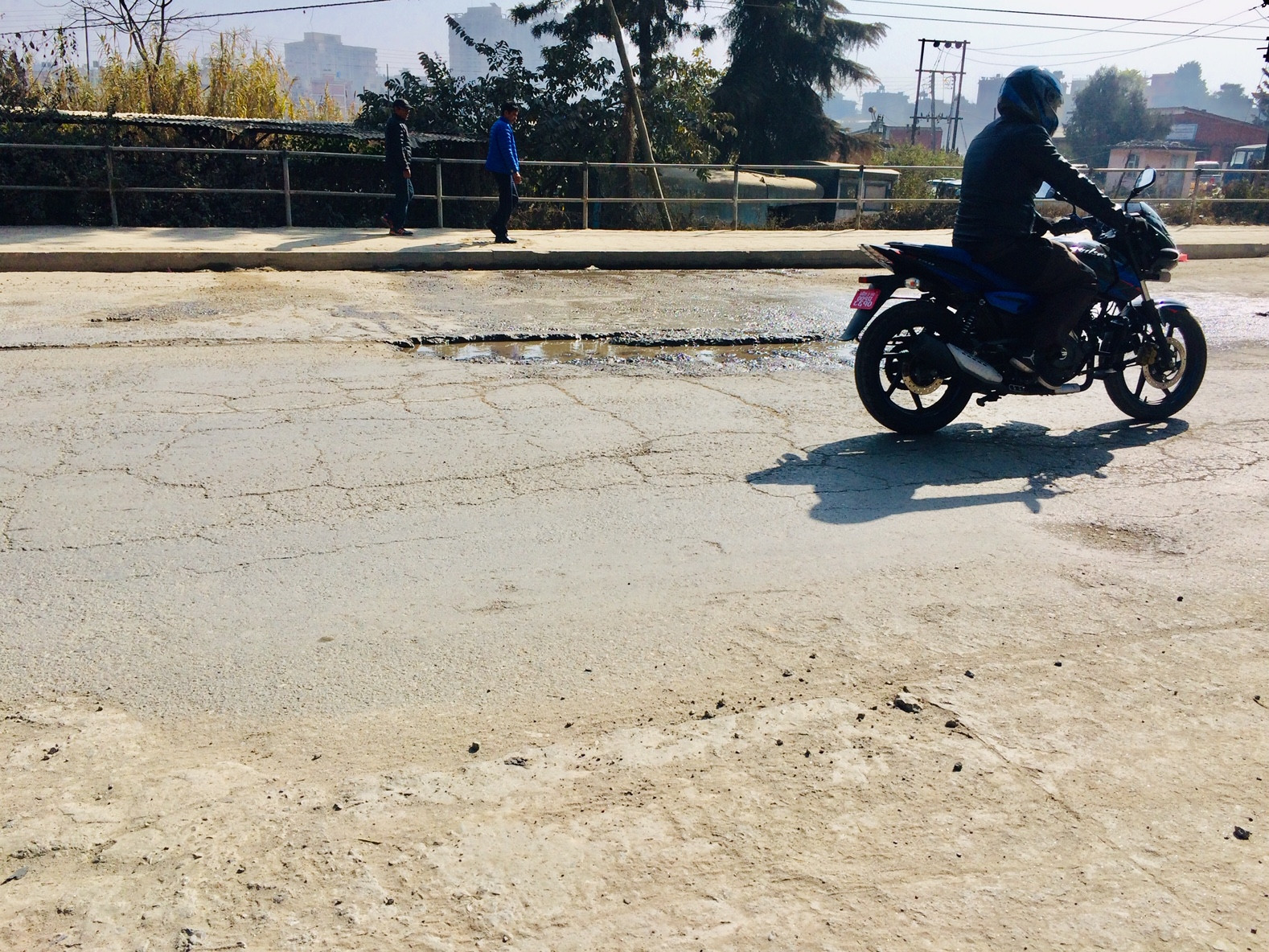 सडकबत्ती नभएको बाटोमा यस्ता खाल्डा नछोपी राख्दा रातको समय दुर्घटना जोखिम बढी हुन्छ। गाडीको हेडलाइटबाहेक यहाँ अरू केही उज्यालो छैन। सवारीको मधुरो हेडलाइटमा अन्धकार बाटोको पूरै अवस्था देखिँदैन। खाल्डोमाथिको होचो पर्खालले छेक्ने त छँदैछ। दुईपाङ्ग्रेको हेडलाइटले रातको समय त्यसै पनि भुइँको कालो खाल्डो र कालोपत्रे छुट्टयाउन मुश्किल पर्छ।