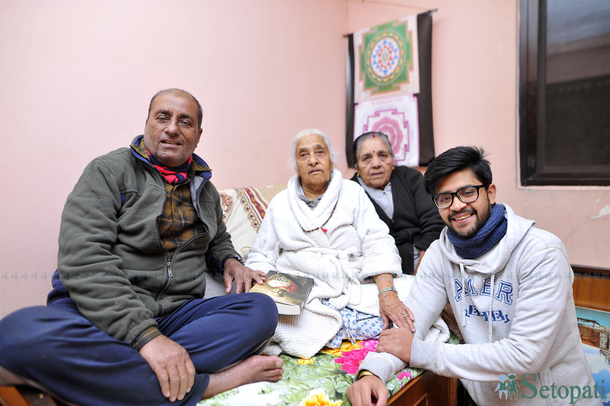 जेठा छोराबुहारी र पनातिसँग इन्द्रमाया। तस्बिरः नारायण महर्जन/सेतोपाटी