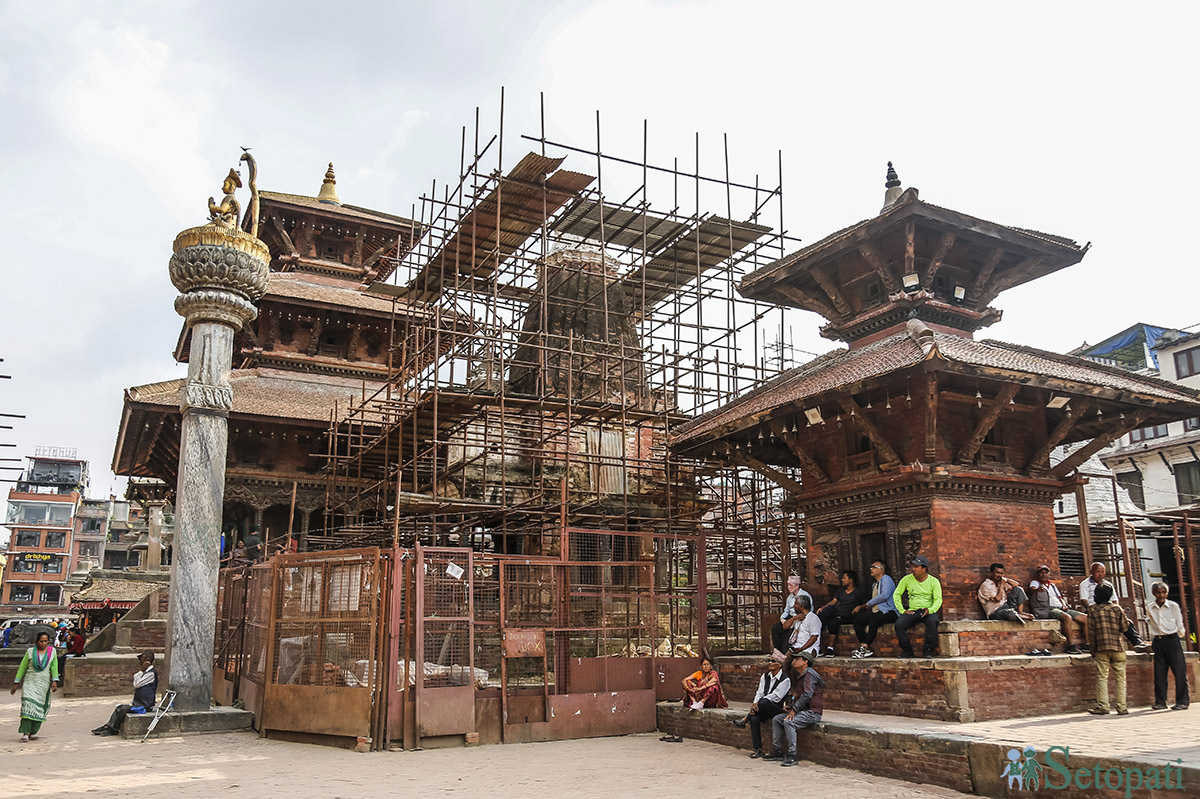 बाहिरबाट झट्ट हेर्दा त्यति क्षति नदेखिए पनि नियालेर हेर्दा मन्दिर जीर्ण छ। विशेषगरी भित्र चारैतिर पिलरका रूपमा राखिएको काठ मक्किएको छ। यहाँ हालसम्म 'स्काफ फोल्डिङ' (संरचना अड्याउन फलामे रडहरू राख्ने काम) मात्र भएको छ।