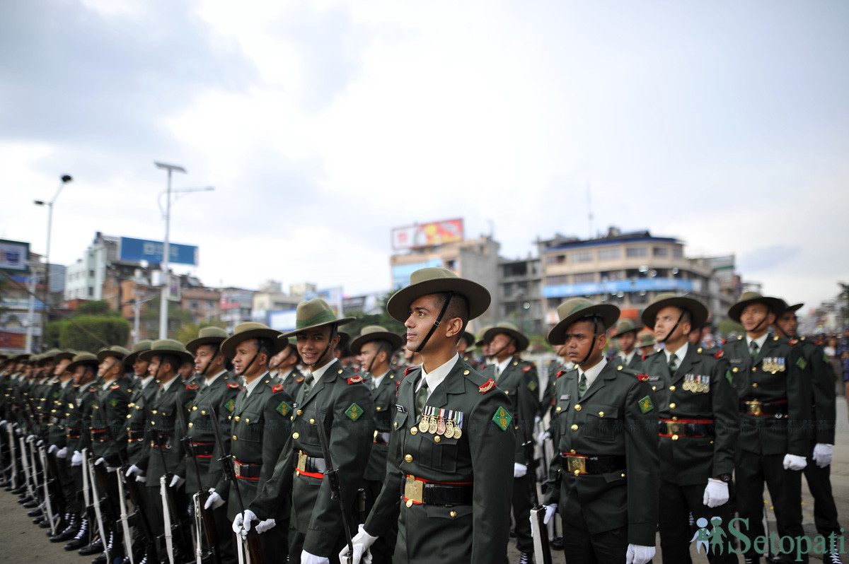 भोटो देखाउने दिन सेनाको सलामी। फाइल तस्बिर: नारायण महर्जन/सेतोपाटी