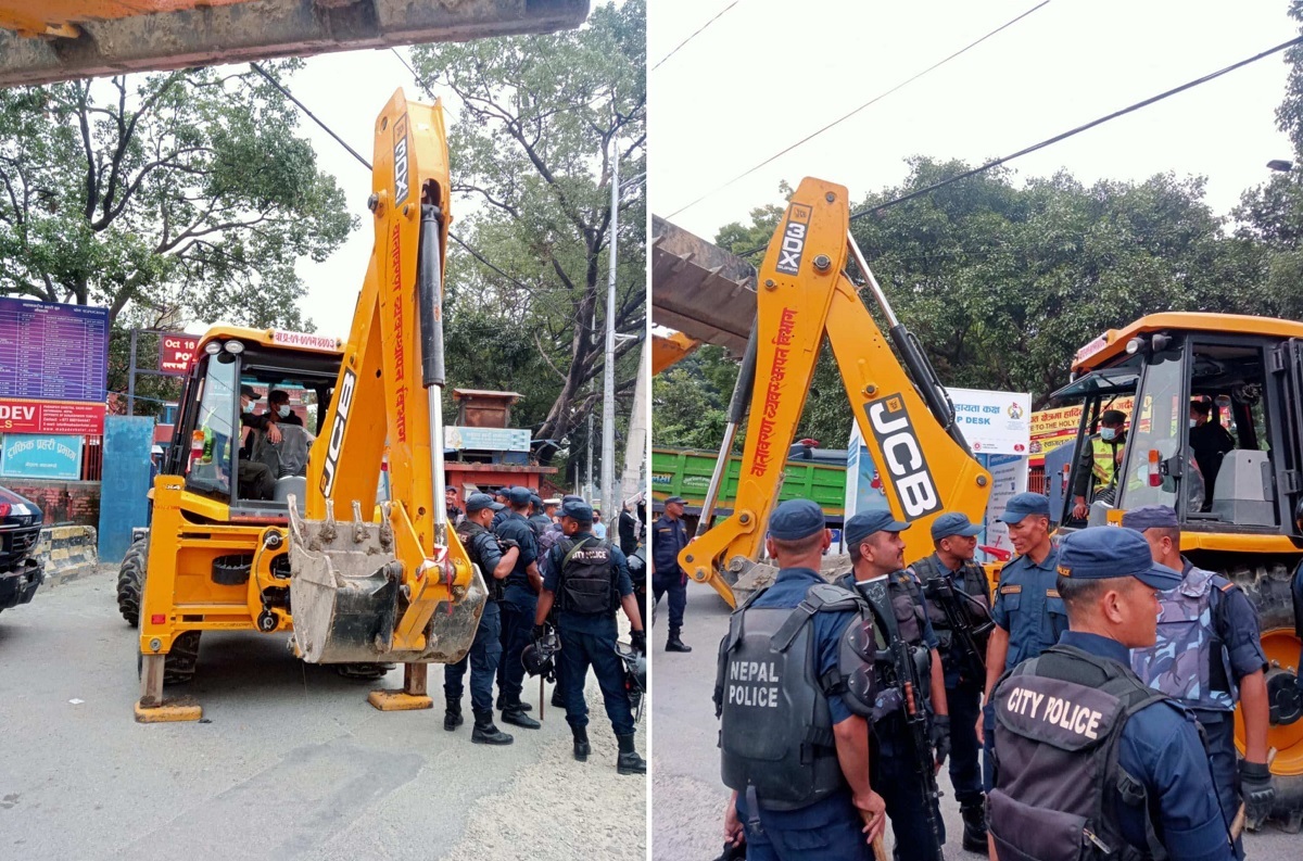 गौशाला/धर्मशालाका संरचना हटाउन पुगेको महानगरको दुइटा डोजर प्रहरीले गर्यो फिर्ता