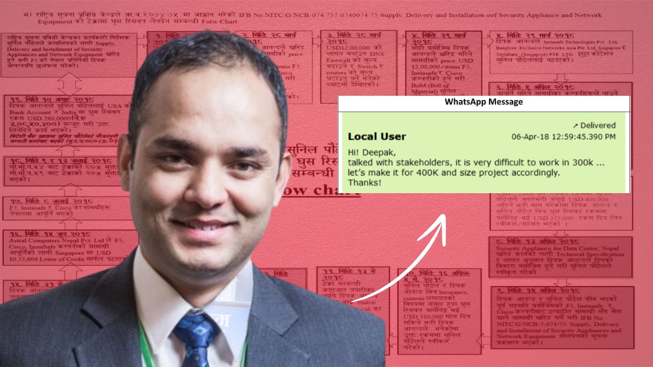‘मलाई तीन वटा कम्पनीबाट खरिद गर्दा लाग्ने लागतको कोटेशन चाहियो,’ पौडेलले ह्वाट्सएपमा आनन्दलाई मेसेज गरे।