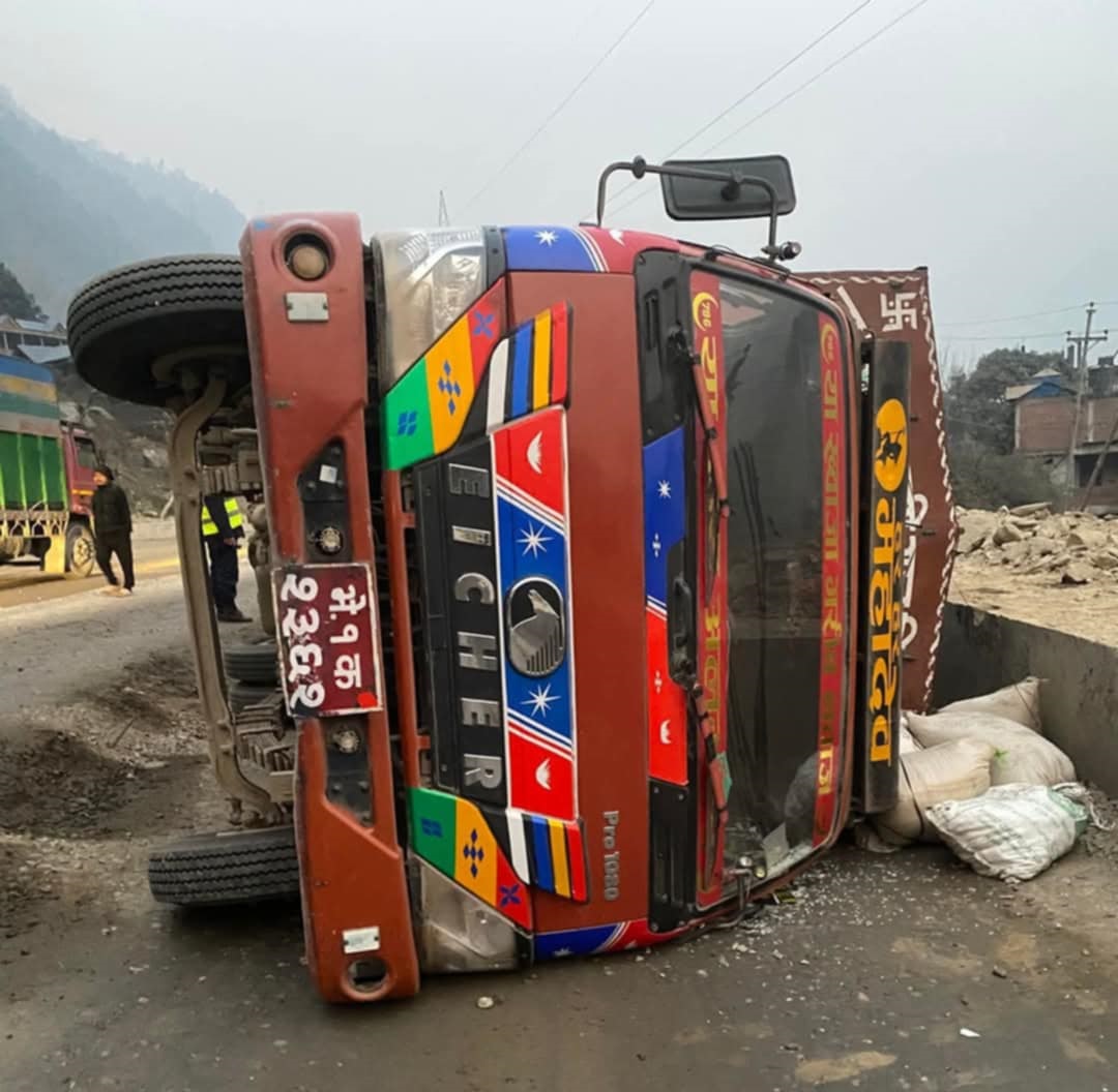 इलाका प्रहरी कार्यालय मुग्लिनका प्रमुख प्रहरी निरीक्षक निरला भण्डारीका अनुसार बर्दियाबाट काठमाडौंतर्फ खसीबोका लिएर जाँदै गरेको भे १ क २३६२ नम्बरको मिनीट्रक अनियन्त्रित भई पृथ्वीराजमार्गअन्तर्गत चितवनको इच्छाकामना–४ लेवाटारमा सडकमा नै आइतबार बिहान पल्टिएको थियो।