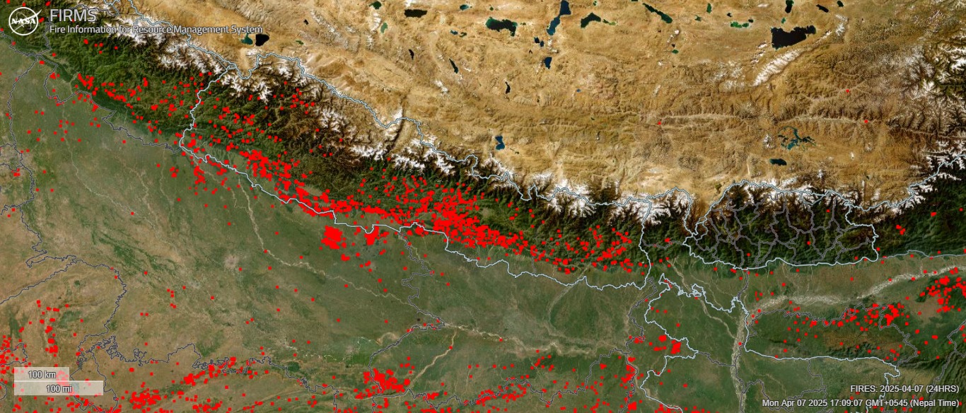 वन तथा भूसंरक्षण विभागको डढेलो पहिचान तथा अनुगमन प्रणालीमा प्रविष्ट भएको तथ्यांक पछ्याउँदा नेपालमा वन डढेलोको विकराल अवस्था देख्न सकिन्छ। नासाको स्याटलाइट तस्बिरबाट पनि नेपालको डढेलोको अवस्था भवावह नै देखिन्छ।