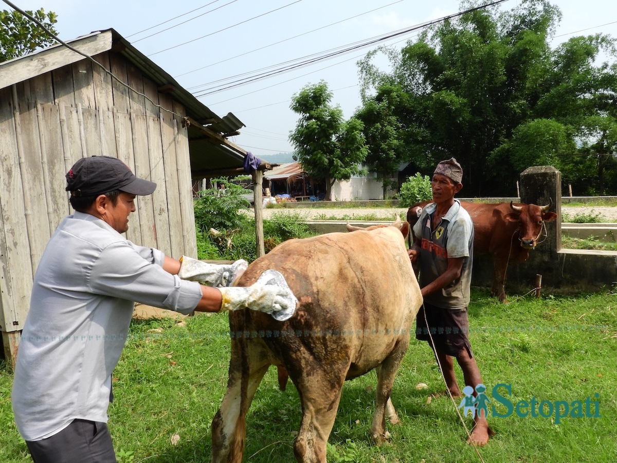 बेलायतको डार्बिन इनिसिएटिभ नामको संस्था अन्तर्गतको यो कार्यक्रममा देवेन्द्रपुरी, खरिकुना, टम्टा अनार लगायतका गाउँमा पालिएका गाई, गोरू र भैंसीमा सेतो रङले 'आँखा' र एक्स चिह्न बनाइएको राष्ट्रिय प्रकृति संरक्षण कोष जैविक विविधता संरक्षण केन्द्र सौराहाका वरिष्ठ रेन्जर ऋषि सुवेदीले जानकारी दिए।