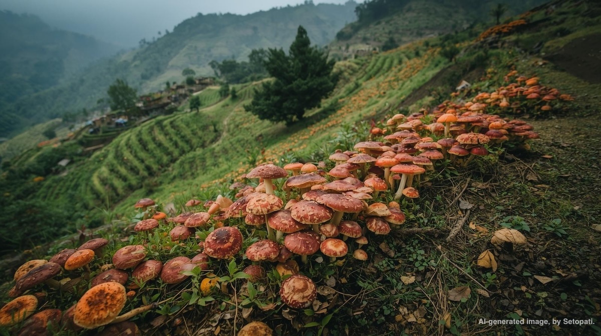 ‘यो च्याउ सल्लाको रूखमा फल्छ, आज बिहान हाम्रो दाइले भेटेर ल्याउनुभएको,’ गत बर्खामा मलाई त्यसको स्वादिलो तरकारी पस्किँदै शेर्पा होटलकी टाशी वांग्मो तामाङले भनेकी थिइन्, ‘यो औषधी हुन्छ भन्छन् तर सधैं फल्दैन।’