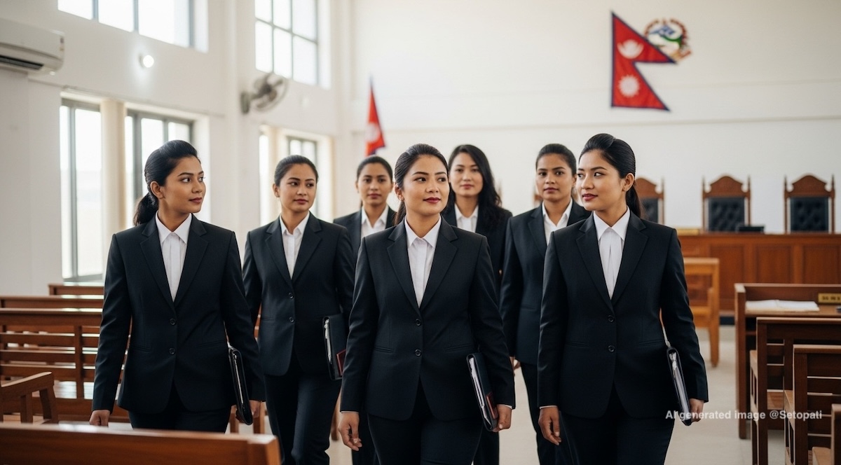 न्यायसेवामा महिलाहरूको प्रवेश व्यापक रूपमा बढ्न थाले पनि नेपाल बार, अदालत परिसरमा अहिले पनि पुरूष अधिवक्ताहरूको बाहुल्यता छ।