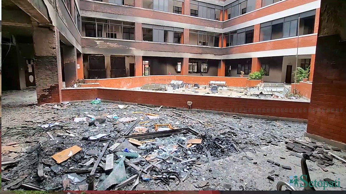 कार्यालय मुख्य ढोकाअगाडि जलेका र फुटेका कुर्सी, कार्पेट, पर्दा, सिसा लगायतको थुप्रो थियो। केही कर्मचारीहरू जलाइएका र फोडिएका सामग्री उठाइरहेका थिए। केहीले खरानी र धुवाँले कालै बनेका कोठा र गल्ली धोइरहेका थिए।