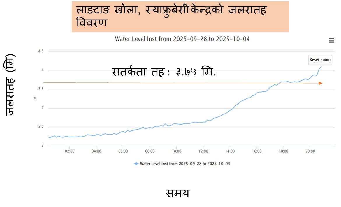 स्याफ्रुबेसी जलमापन केन्द्रका अनुसार त्यहाँको जलसतहले सतर्कता तह पार गरेको र बढ्दो क्रममा छ।