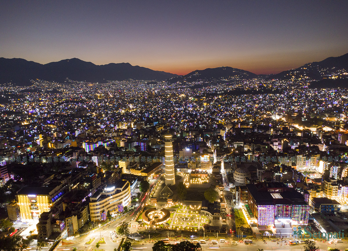 काठमाडौं उपत्यका यति बेला झिलिमिली देखिन्छ।
